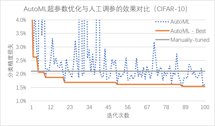 相比于费时费力的人工调参,PocketFlow框架中的AutoML自动超参数优化组件仅需10余次迭代就能达到与人工调参类似的性能,在经过100次迭代后搜索得到的超参数组合可以降低约0.6%的精度损失;通过使用超参数优化组件自动地确定网络中各层权重的量化比特数,PocketFlow在对用于ImageNet图像分类任务的MobileNet-v1模型进行压缩时,取得了一致性的性能提升;用PocketFlow平均量化比特数为8时,准确率不降反升,从量化前的70.89%提升到量化后的71.29%。