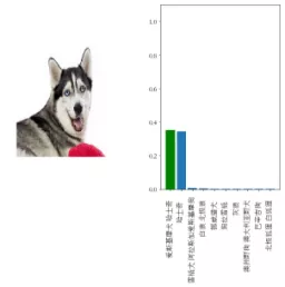 图12-1中,左侧为输入的图片,右侧为其预测的结果。可以看到模型能够成功的预测出该图片内容是一只哈士奇狗。