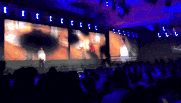 大会进行到这里,全场灯光突然熄灭,直到3秒后才亮起。