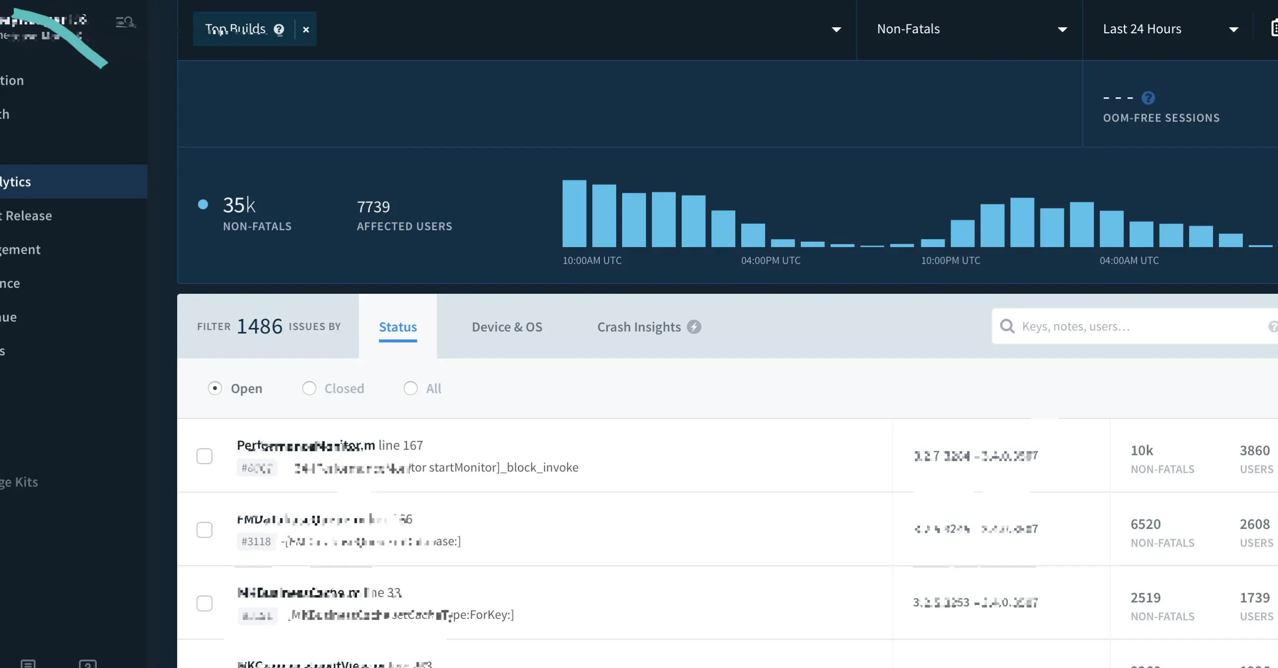 所有的数据都在 crashlytics 里,选择 non-fatal,即可,从统计下来的数据来看,卡顿主要体验在;