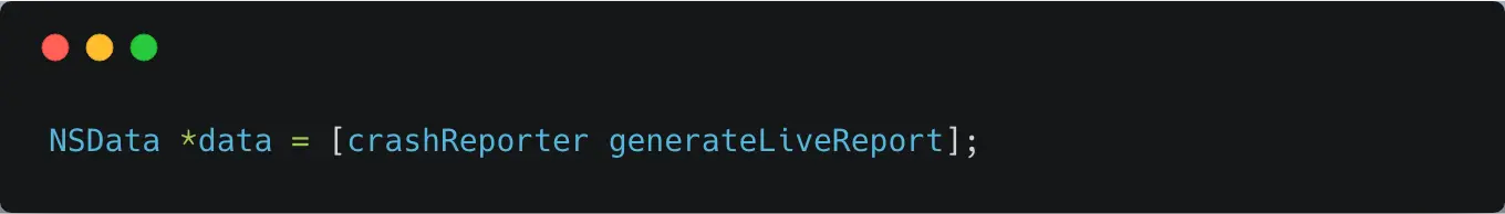OK,拿来主义,一个很有名 PLCrashReporter。我自己集成测试,在我的老古董机器,iPhone 6 跑,卡顿是能检测到,但是整个软件基本不可用,整个界面全卡住了。PLCrashReporter 生成日志代码如下图所示。