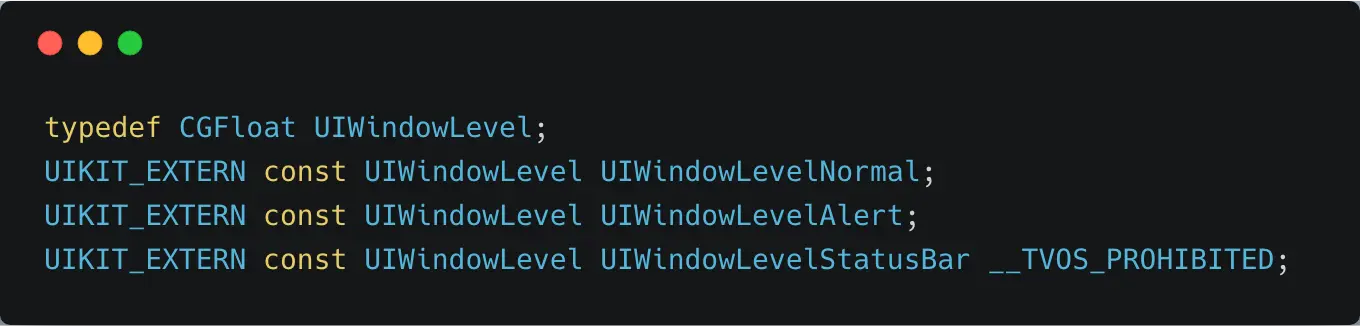 先去 UIWindow.h 里面看看 UIWindowLevel 的定义:
