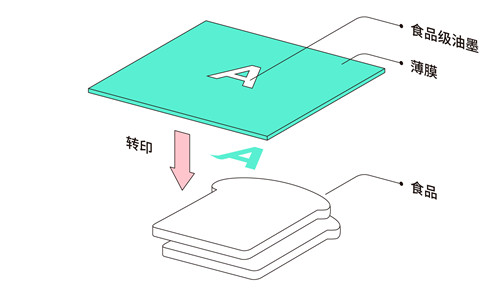 基于食品卫生管理法将食品或食品添加物制成油墨,印刷在食品上。上色方式有先将印纹印刷在用蒟蒻等制作的薄膜再转印到食品外,也有喷墨列印的方式。