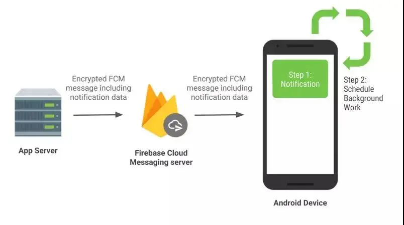 虽然 FCM 消息有效负载很方便,但有最大 4KB 限制。如果您需要发送带图片等丰富媒体内容的通知,或想通过向应用持续同步媒体内容来改善用户体验,就需要超过 4KB 有效负载限制。对此,我们推荐将 FCM 消息与 WorkManager 或 JobScheduler API 配合使用。