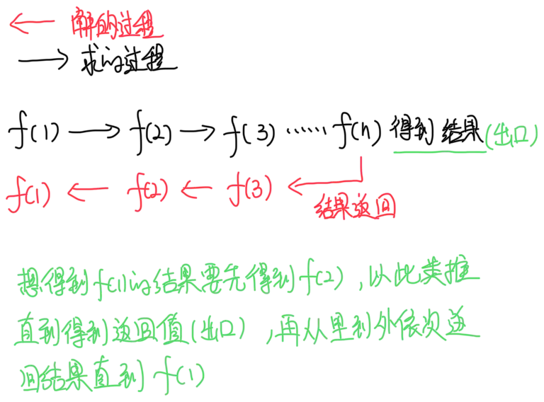 找到递推关系(例:由n-1推出n),找到终止条件。