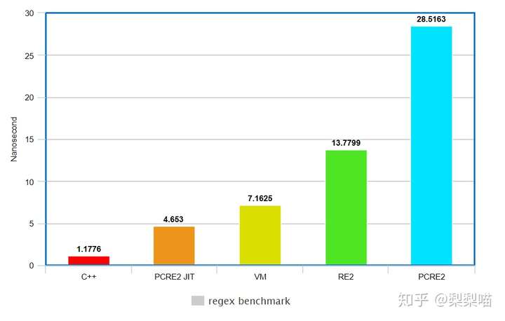 到这里当然少不了的就是benchmark啦, 接下来是激动人心的时刻啦, 来看看优化后的指令和其他正则表达式库的效率对比吧: