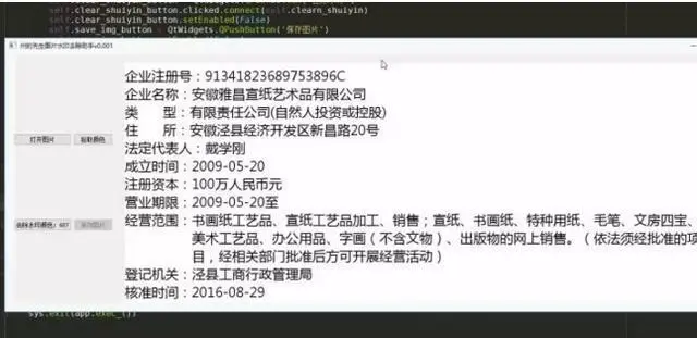 如果这样直接对图片进行ORC文字识别,有可能会导致不能正确识别出公司名称来。我们需要对水印进行去除。