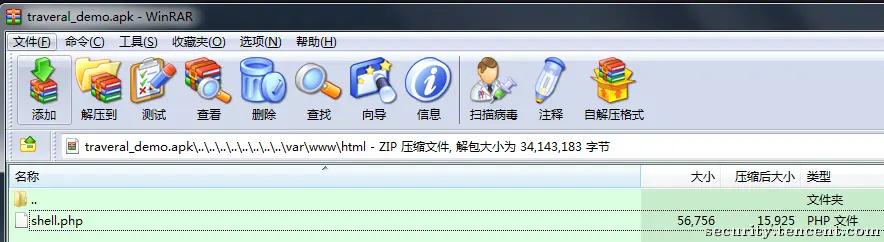 当用户下载这个apk,使用apktool对其进行反编译时, shell.php文件会被释放到/var/www/html路径下,同理,也可以替换用户其他路径下的文件。