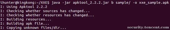 利用方式:恶意攻击者通过构造Android应用中的恶意XML文件,用户使用Apktool对该应用进行重打包时,触发XXE漏洞,导致对用户电脑上文件的访问。