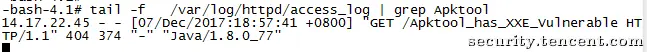 当用户使用Apktool对这个目录进行重打包生成Apk时,从远程服务器日志可以看出,用户电脑已经静默访问该网站。