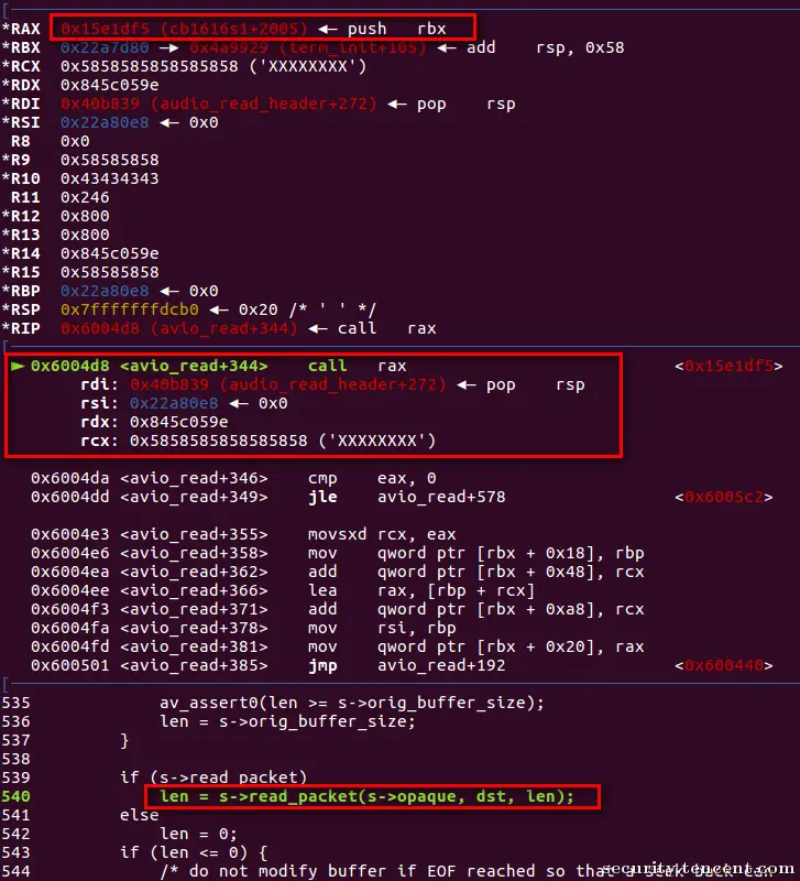 这样在avio_read函数中循环进行下一次读取的时候就控制了PC