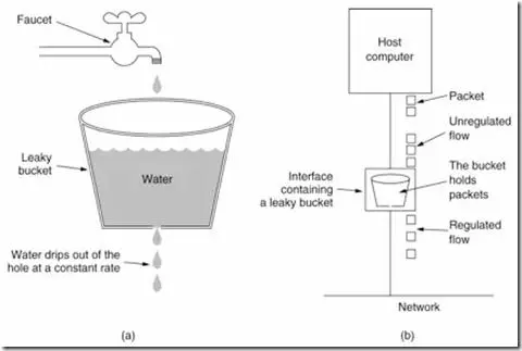 所谓漏桶( Leaky bucket ),则是指,有一个盛水的池子,然后有一个进水口,有一个出水口,进水口的水流可大可小,但是出水口的水流是恒定的。下图图示可以显示的更加清晰:
