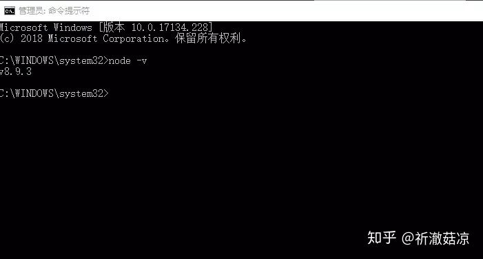打开cmd,输入node -v命令,查看是否安装成功,安装成功显示如下图