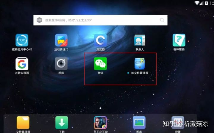 模拟器微信中运行一下后,直接切回模拟器桌面运行RE文件管理器