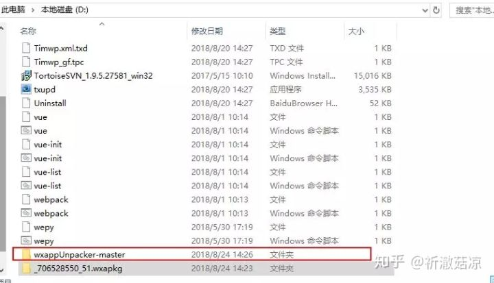 cd 到下载好的反编译脚本目录下,我把文件放在了d盘里面,因此D:>cd wxappUnpacker-master。