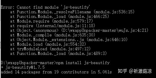 1:使用node wuWxapkg.js 反编译命令时,如果报 Cannot find module 'xxx' 这种类型的错,