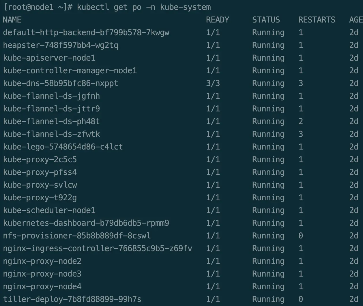 至此,集群部署到此结束,可以执行下面命令查看pod状态,都为Running状态则部署成功: