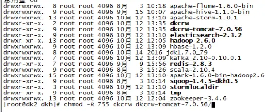 6、在分发了dkcrw-tomcat-7.0.56文件的节点上给文件添加权限