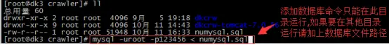 使用mysql -uroot -p123456 < numysql.sql 命令添加numysql.sql数据库