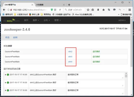 Hbase.zookeeper.quorum所填地址应在DKM监控平台查看: