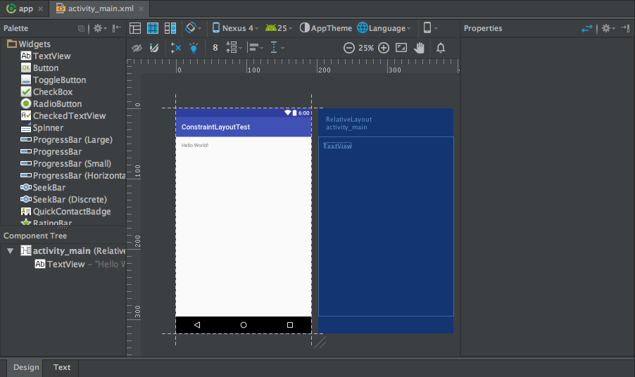 转换完成之后,原RelativeLayout中的内容也会自动转换到ConstraintLayout中,比如图中的TextView。如果你不需要它的话,可以选中这个控件,然后按键盘上的Delete键即可删除。