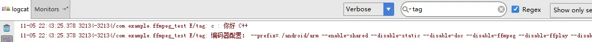 __android_log_print(ANDROID_LOG_ERROR,"tag","编码器配置: %s",avcodec_configuration());#log日志打印