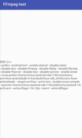 char * newstr = strcat(chello,avcodec_configuration());#将java传过来的字符串和编码器配置信息拼接起来并返回去