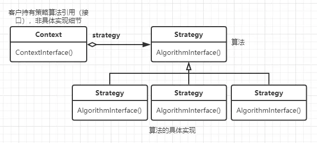 Context 与Strategy关系为一对多,Strategy与ConcreteStrategy关系为一对多