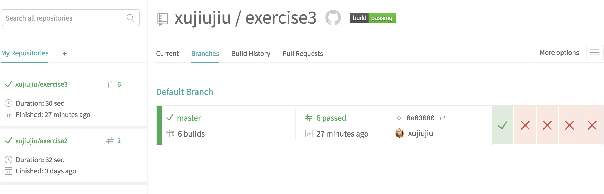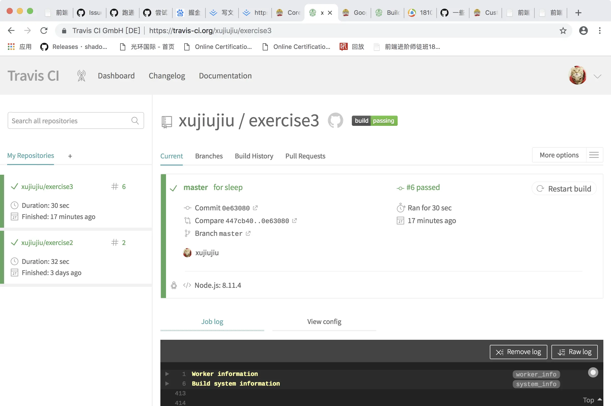 在travis上,可以构建和测试仓库对应的github的最新提交记录的代码,比如我今天测试了一串代码,总共提交了5次,最后一次成功了,如果要在travis上做测试,必须把代码提交上github,觉得有点麻烦,既然本地也能测试,为啥要在线上进行测试呢?不懂,但好像这个工具很火。不管,了解一下。