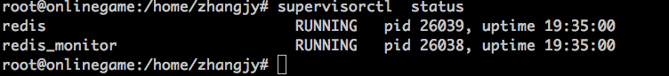 配置了上诉配置后,就可通过supervisorctl看到配置的两条内容,一条是redis监控项,另外一条则是事件监听器redis_monitor:
