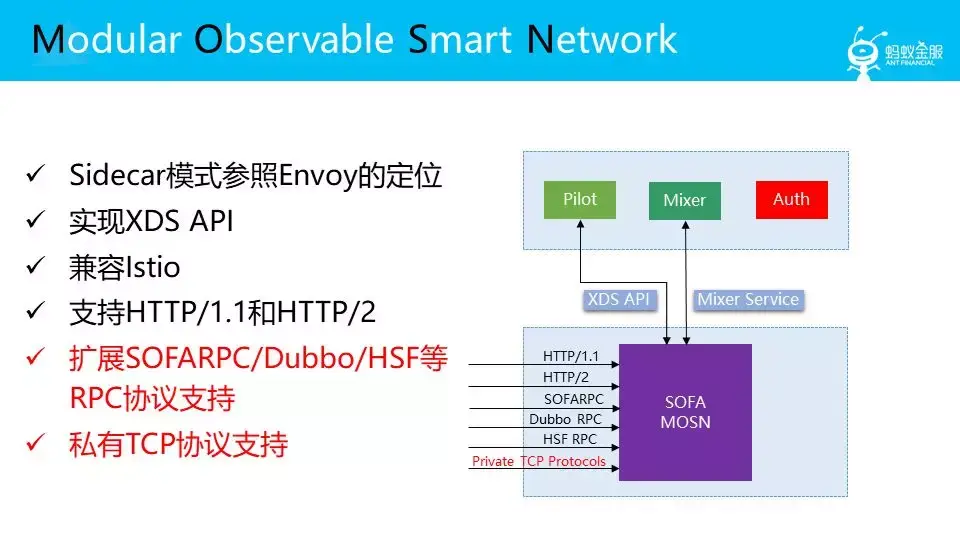 而我们 SOFAMesh,在第一时间就遇到和 Istio/Envoy 不同的情况,我们需要支持 REST 和 gRPC 之外的众多协议: