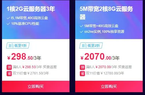 据说阿里云和友商在抢占市场,双十一直接服务器1折价格。特意去官网看了下。