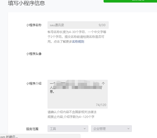 开始填写小程序发布流程: