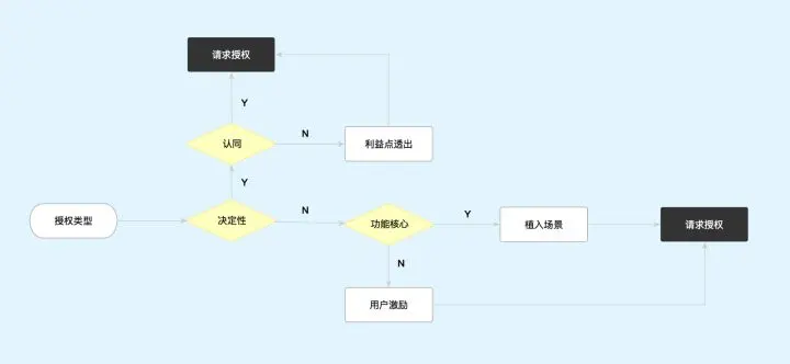 到这里大家可能会有一些感觉了,请求授权的设计不仅仅在于那个弹框,文案、情景、时间节点都是影响其最终结果的重要因素。现在我们可以再来系统的理一理整个思路了。