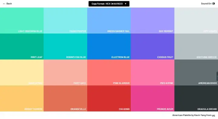 这个网站提供了多种主流 UI 配色方案,有明度和饱和度的对比,点击色块就可以直接复制色值,非常方便。