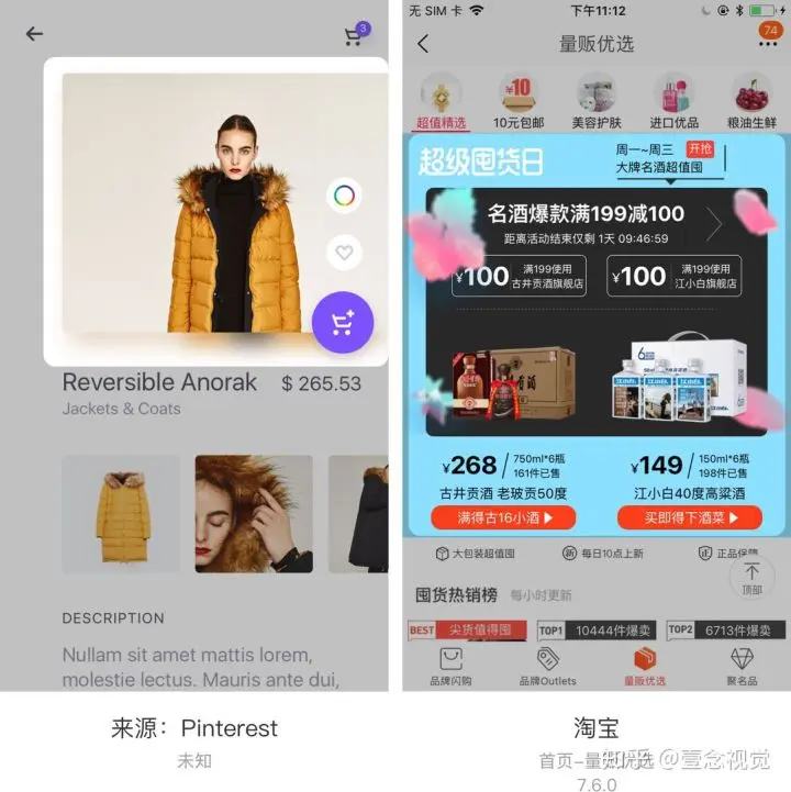 图文错开类样式一般适用于想要有个性化页面展示的App,相对于其它中规中矩的App有更多的创意类元素可供发挥,例如:上图图一的卖比较个性类别的服装。