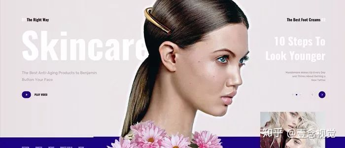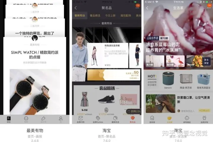 这里淘宝的生活家页面背景采用的是视频展示,顶层采用了多个图片进行展示,并配合了相应的文案。并且引入了期刊杂志的概念,进行专题展示。