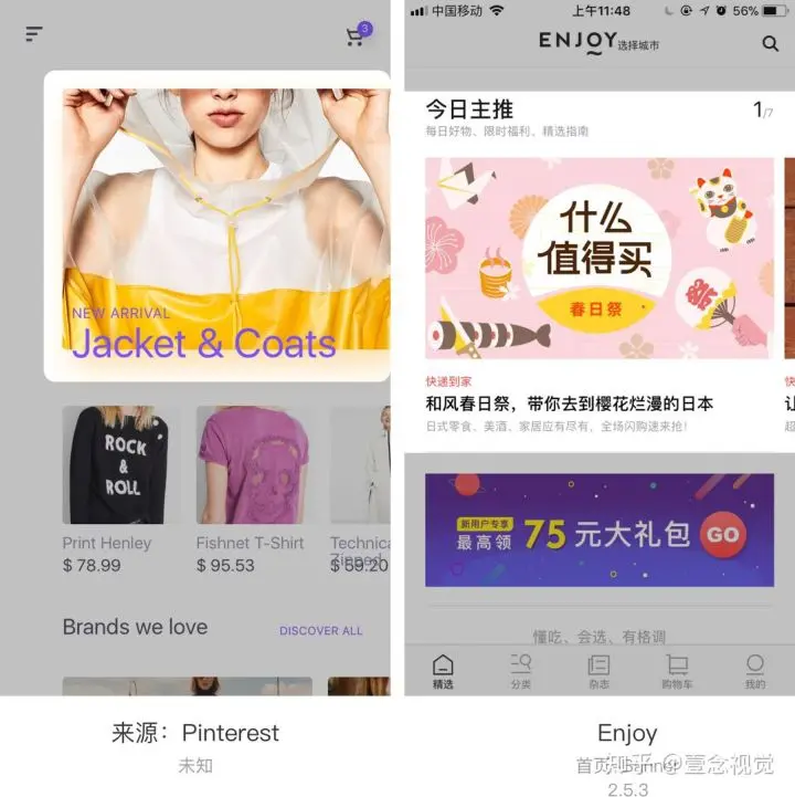 图文关联类一般适用于每个Banner都有一致性的文案和标签信息展示的时候使用,例如:电商类的Enjoy。