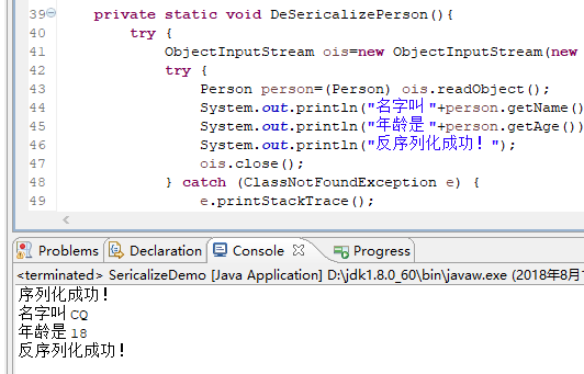 1)实现一个序列化操作 首先定义一个对象的类【实现序列化操作需要继承sericalize接口】
