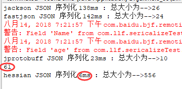 System.out.println("JSON 序列化 "+(System.currentTimeMillis()-start)+"ms : 总大小为-->"+writeBytes.length);