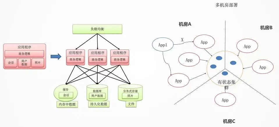 影响应用迁移和横向扩展的重要因素就是应用的状态。无状态服务,是要把这个状态往外移,将 Session 数据,文件数据,结构化数据保存在后端统一的存储中,从而应用仅仅包含商务逻辑。