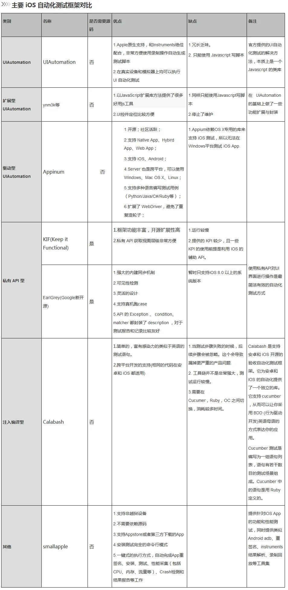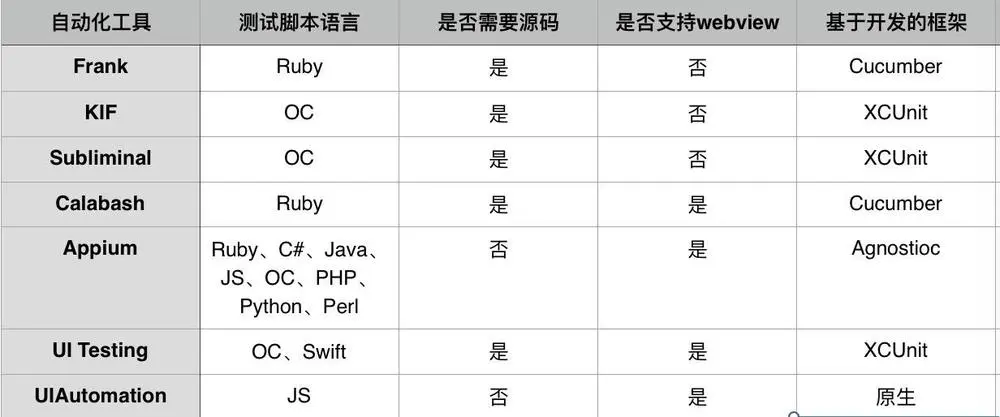 UIAutomation是苹果提供的UI自动化测试框架,使用Javascript编写。基于UIAutomation有扩展型的工具框架和驱动型的框架。扩展型框架以JavaScript扩展库方法提供了很多好用js工具,注入式的框架通常会提供一些Lib或者是Framework,要求测试人员在待测应用的代码工程中导入这些内容,框架可以通过他们完成对app的驱动。驱动型UIAutomation 在自动化测试底层使用了UIAutomation库,通过TCP通信的方式驱动UIAutomation来完成自动化测试,通过这种方式,编辑脚本的语言不再局限于JavaScript