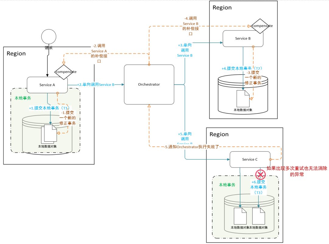 只是在我们打破了链式规则后必须要额外确保执行了「回滚」之后再接收到「正向请求」,等于“请求无效”的效果。中心节点模式还有一个比较大的好处是能够更好的避免事务之间的循环依赖关系。