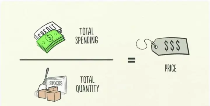 支出总额是经济的驱动力,如果用支出金额除以销量,即得出价格。交易是经济机器中最基础的零件,所有的经济周期和动力都是交易造成的。所以,理解了交易,就理解了整个经济。一个市场由买卖同一商品的买方和卖方组成,例如小麦市场、汽车市场、股票市场等,经济就是由所有市场内的全部交易组成的。如果你把它的全部总支出和总销量加到一起,就了解了经济运行所需要的全部信息。