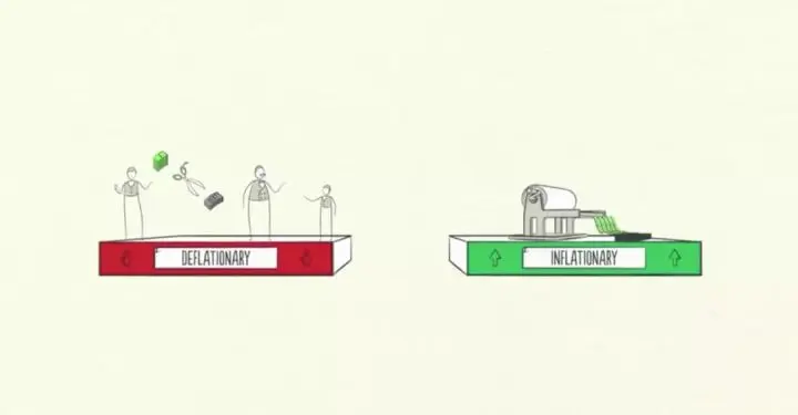央行不希望通货膨胀过高,因为这会导致很多问题。所以,央行在看到价格上涨时,会提高利率来控制信贷数量,同时现有的债务成本也会上涨,等于你每个月的信用还款额会增加。由于人们减少借贷,还款额度增加,用于支出的金额将减少,由于「一个人的支出是另一个人的收入」,环环相扣,循环下来,价格就会降低,我们称之为「通货紧缩」。经济活动减少,经济便进入衰退,如果衰退严重,通货膨胀不再是问题,央行会重新降低利率,使经济加速。由此可见,经济像一部机器运行。