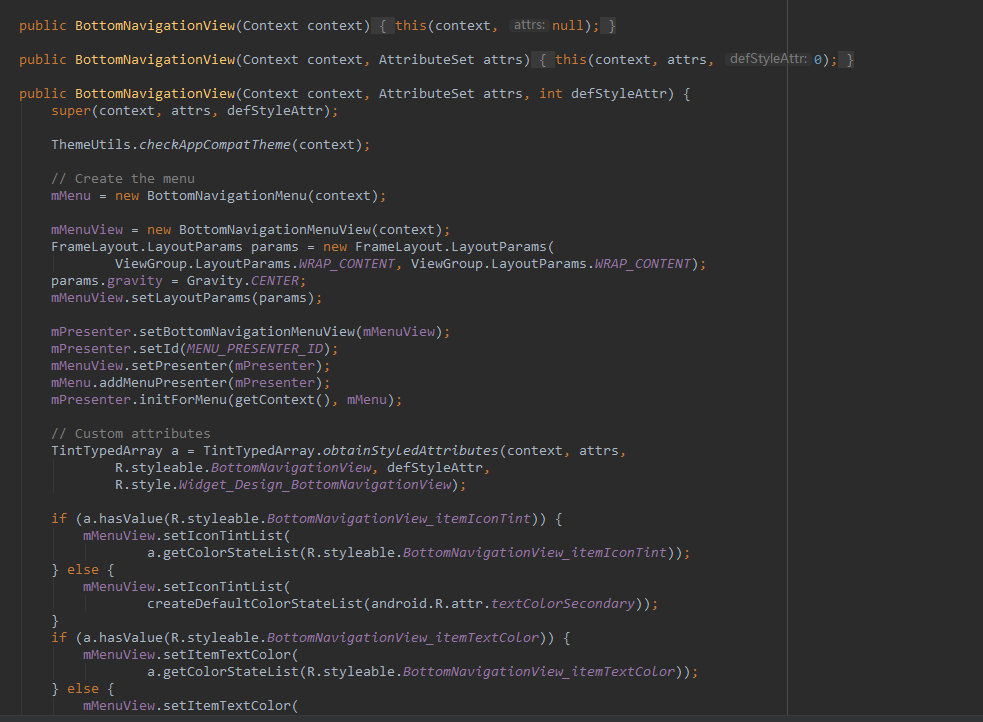 到了这一步,相信大家心里都有点逼数了。BottomNavigationMenuView可以通过BottomNavigationView 获取到,BottomNavigationItemView我们可以通过BottomNavigationMenuView获取到,ImageView可以通过BottomNavigationItemView获取到,获取到了ImageView那不就是为所欲为了吗。直接把宽高设置了