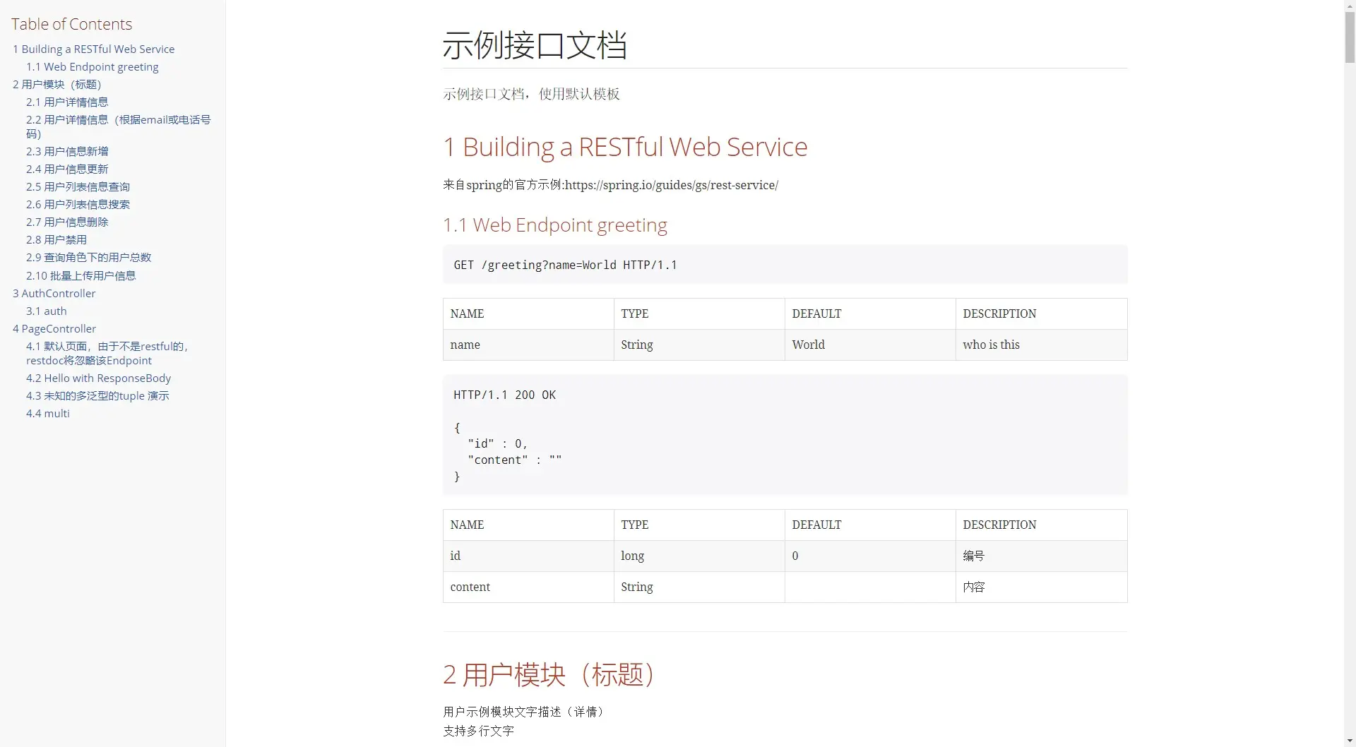 * 来自spring的官方示例:https://spring.io/guides/gs/rest-service/