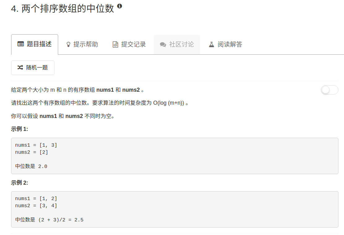 因为要遍历两个数组,所以时间复杂度为 ,而题目中要求算法的时间复杂度为